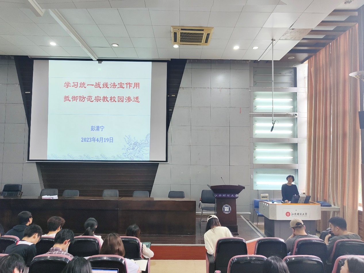 4月19日下午,亚洲色吧 于研究生院报告厅开展第二十四期入党积极分子培训第五讲,主题为“学习统一战线法宝作用,抵御防范宗教校园渗透”,由校党委常委、统战部部长彭清宁讲授。