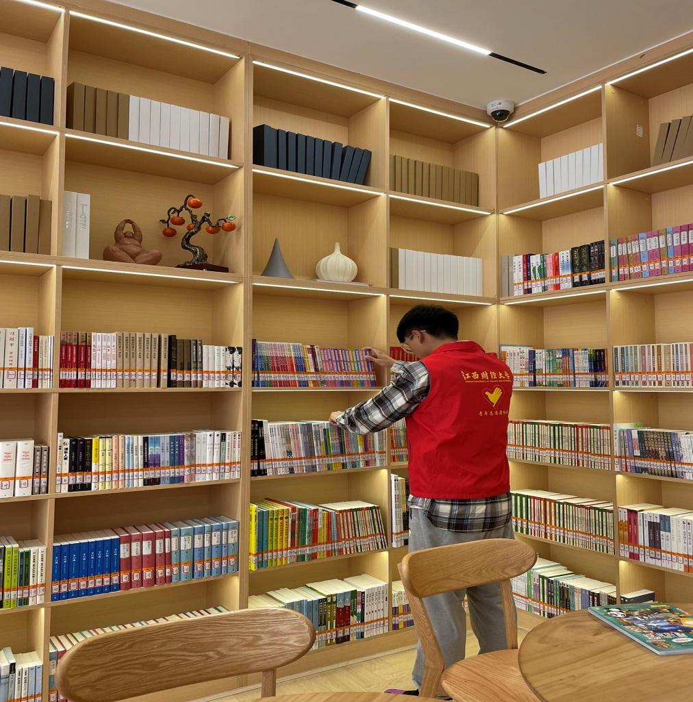 活动当日,志愿者按时抵达书院并接受工作人员简单的培训,主要培训阅读卡激活、图书分类上架、分区引导等服务工作,而后,志愿者在指定服务范围为前来借阅的读者提供服务,在服务之外,志愿者们还不约而同地做了简单的清扫工作,为阅览者提供一个干净整洁的阅读环境。