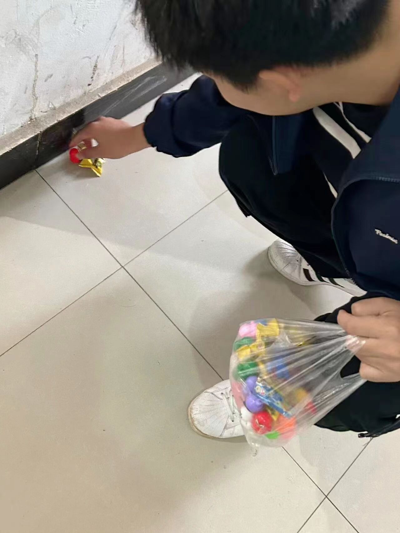 活动过程中,同学们纷纷加入寻宝队伍,积极寻找并带走这些可爱的小礼物,这些礼物包括捏捏乐小动物、爬墙蜘蛛人、不倒翁玩具以及糖果等。同学们寻宝“小惊喜”成功后进行拍照留念,上传至QQ空间进行转发,分享今天遇见的趣事和收获小礼物的感受。