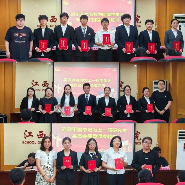 谢尔艾力老师为团委学生会优秀部门颁发荣誉证书吴佩芹老师远翠平副书记分别为上一届学生会委员会委员上一届研究生委员会委员颁发聘书