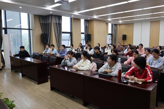在江西洪城城北污水处理有限公司,生产部俞雅婷部长首先为同学们进行专业知识传授,在室内通过PPT展示、生动图像和详细讲解,为同学们讲解生活污水处理流程、生产质量控制,以及各生产环节质量标准等专业内容。