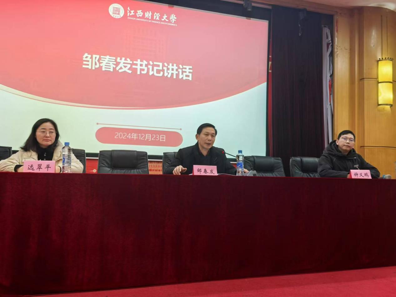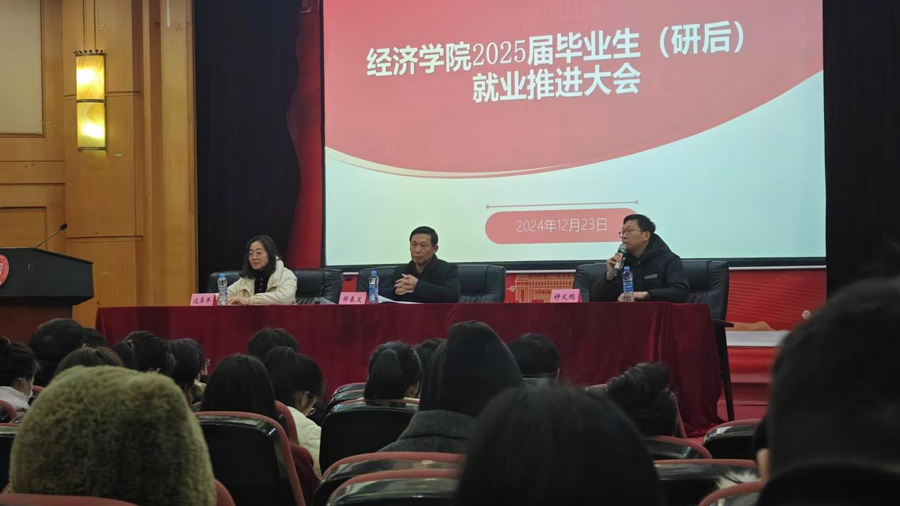 为进一步督促2025届毕业生就业工作,了解就业形势,分析相关政策,备战校园线上招聘会,12月23日下午,亚洲色吧 于国际学术报告厅召开2025届毕业生(研后)就业工作推进大会。亚洲色吧 党委书记邹春发、党委副书记远翠平、团委书记万婧怡、学工办主任吴佩芹、辅导员谢尔艾力、毕业班班主任以及2025届毕业班学生参加此次大会。大会由就业专员钟义鹏主持。