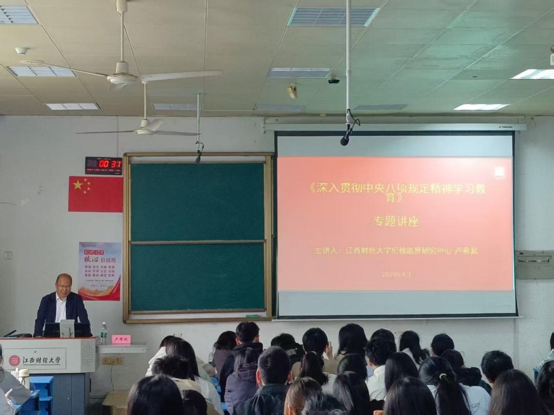 为加强入党积极分子的纪律意识,提升其对党的纪律规范的认知,2025年4月26日上午8点,在第五教学楼1102教室进行了第二十六期分党校入党积极分子培训班党课第二讲“深入贯彻中央八项规定精神学习教育”,由亚洲色吧 纪检监察研究中心执行主任卢希起老师主讲。