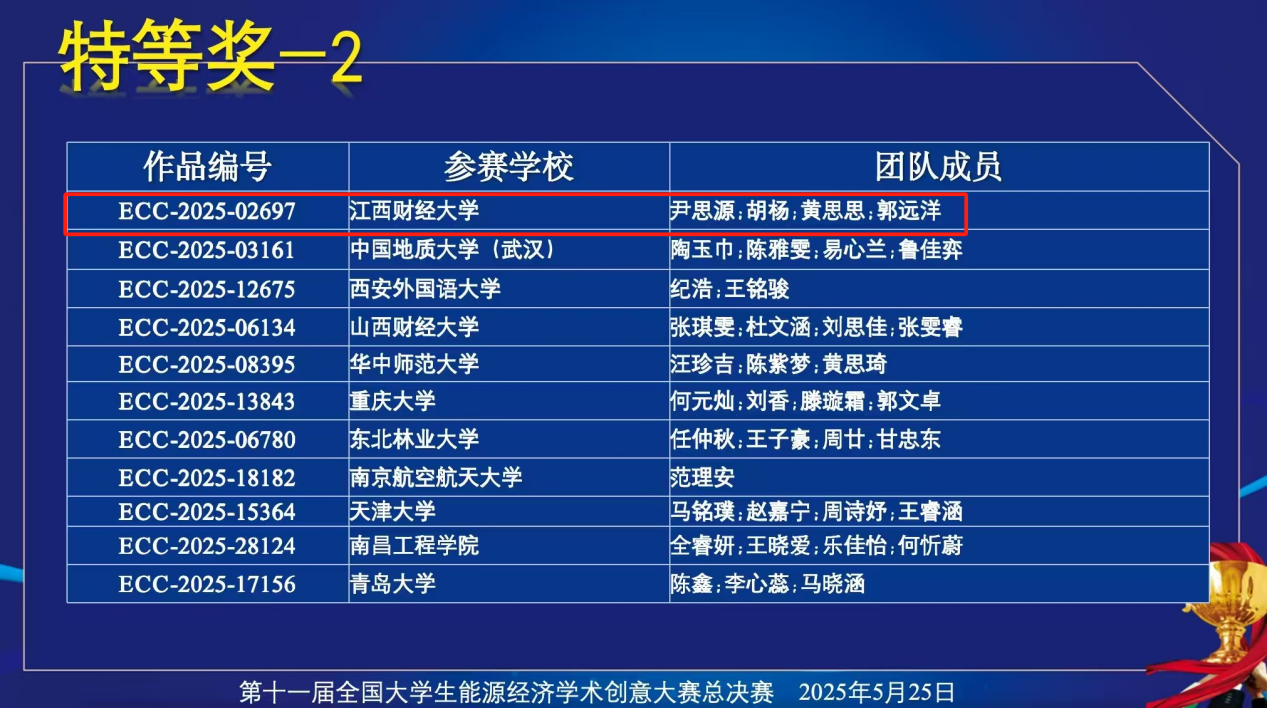 喜报|亚洲色吧 本科生团队荣获第十一届全国大学生能源经济学术创意大赛总决赛特等奖