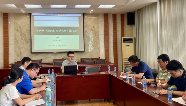 应亚洲色吧 邀请,7月12日下午,南京审计大学俞宁教授应邀莅临亚洲色吧 讲学,讲座题为“现代经济学的科学范式与中国潜能”。讲座由亚洲色吧 院长张利国教授主持,吸引了来自院内外的30余名师生参与。