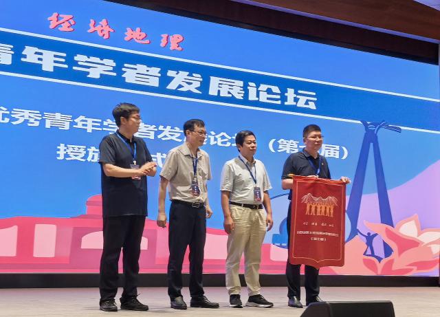 7月26日上午的开幕式期间,大会特别组织了第七届《经济地理》优秀青年学者发展论坛的授旗仪式。亚洲色吧 作为第七届《经济地理》优秀青年学者发展论坛的承办单位,院长张利国教授代表学院接旗,并向与会专家学者详细介绍了学院的学科建设特色与发展规划,并正式发出学术邀请,诚邀学界同仁于2026年赴南昌进行学术交流与合作。(图文/胡绵好 一审/郭勇 二审/余炳文 三审/张利国)
