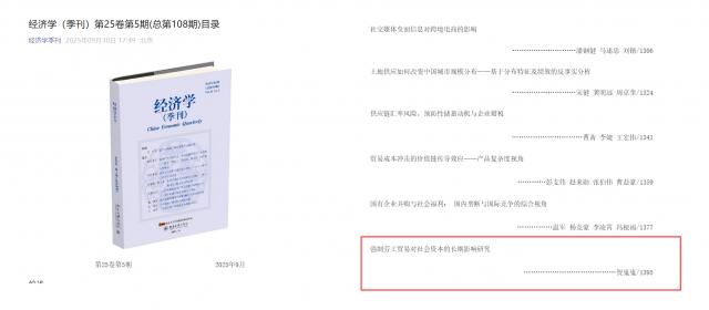 近日,贺嵬嵬博士独立完成的论文《强制劳工贸易对社会资本的长期影响研究》发表于国内权威期刊《经济学(季刊)》2025年第5期。
