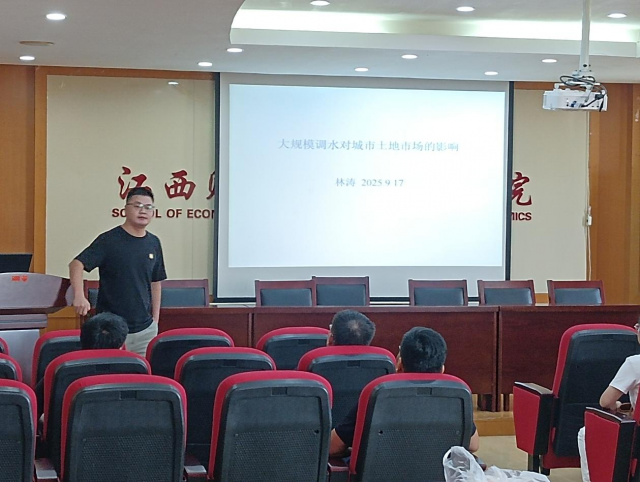 Dr. Lin Tao Shares Latest Research Findings at the School's Biweekly Academic Seminar On the afternoon of September 17, 2025, the School of Economics successfully held its Biweekly Academic Seminar in Conference Room 718. Dr. Lin Tao, a young faculty member of the school, presented his latest research titled The Impact of Large-Scale Water Diversion on Urban Land Markets.