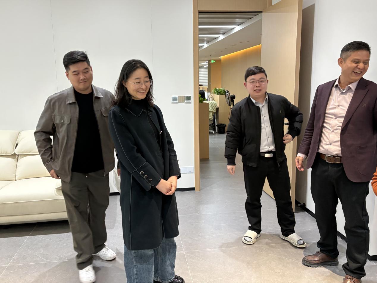 访问期间,在公司董事长和人力资源部负责人的陪同下,老师们深入公司办公区、样品展示厅及电商运营部门,实地考察了企业的运营模式、业务布局与发展现状,并看望了在岗工作的江财往届毕业生。